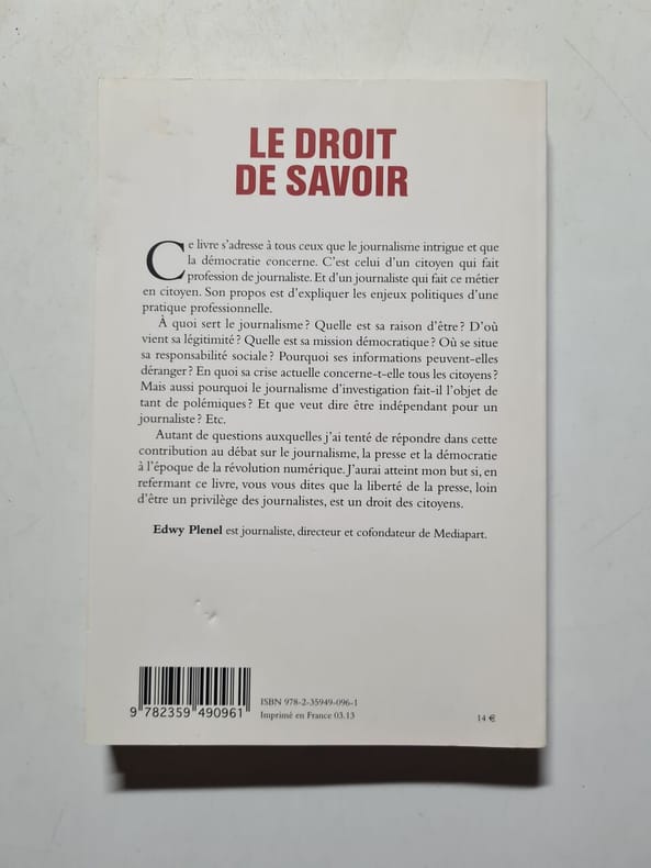 Collection le droit de savoir. Classification Dewey : 97.2-Dédicace, envoi