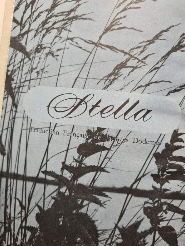 …Toute mon admiration et mes compliments pour ces conférences sur nos chers poètes… Au verso, Stella Dargis a ajouté « sa prière » : …EXAUCE ma prière, apologie du Bien, du Beau, du raisonnement, il ne manquera rien / Si tu veux nous donner la Joie et la Bonté / LEquilibre cherché, largent et la santé, Fais, sans souci, aucun, que nous vivions longtemps / Dans un vrai Paradis, parfaitement contents, / Aux artistes, permets dêtre enfin réunis au village retraite, en un site joli…