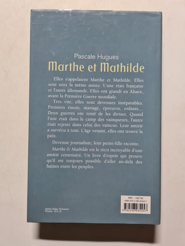 “Marthe et Mathilde” est un récit biographique écrit par la journaliste Pascale Hugues, petite-fille des deux héroïnes, qui a en particulier travaillé pour le journal Libération et est correspondante de l'hebdomadaire Le Point à Berlin. Son intérêt réside dans le fait qu'à travers la vie de la Française Marthe Réling et de l'Allemande Mathilde Goerke, il témoigne de l'histoire mouvementée de l'Alsace pendant une centaine d'années entre la fin du XIXe siècle et la fin du XXe siècle puisqu'elles sont mortes toutes les deux en 2001, presque centenaires.