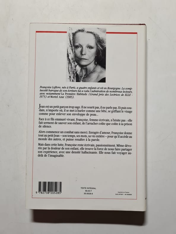 Actes sud / Romans 1990 156 pages in8. 1990. Broché. 156 pages. Femme déchirée femme déchaînée la narratrice de ce livre est avec toute sa passion un écrivain qui tente de raconter l'histoire de Blanche une éblouissante cantatrice que la mort ronge vivante. Mais elle est d'abord la mère de Sylvestre l'enfant autiste qu'elle veut à tout prix faire accéder à la vie et au monde des autres. Or le petit prince cannibale en ce combat dévore les phrases les mots de la mère écrivain. Et dès lors c'est un véritable duo concertant qui s'élève dans les pages du livre entre deux voix entre deux femmes l'une superbement triviale s'affrontant à tous les interdits et préjugés qui menacent son enfant l'autre la romancière rauque et passionnée dont les espoirs et les désespoirs se mêlent à ceux de Blanche son héroïne. Sortant elle-même d'un long silence Françoise Lefèvre fait retour à l'écriture avec ce texte flamboyant inclassable. Ce n'est pas un roman... c'est un roman