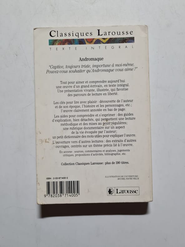 Editions Hatier 2011 2011. Jean Racine: Andromaque texte intégral/ Hatier 2011 Référence: LMA17H. Jean Racine: Andromaque texte intégral/ Hatier 2011