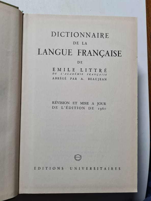 Contenant pour la nomenclature: tous les mots qui se trouvent dans le dictionnaire de l'Académie Française et tous les termes usuels des sciences, des arts des métiers et de lavie pratique; pour la grammaire: la prononciation de chaque mot figurée et , quand il y a lieu, discutée, l'examen des locutions, des idiotismes, des exceptions et, en certains acs, de l'orthographe actuelle, avec des remarques critiques sur les difficultés et les irrégularités de la langue; pour la signification des mots: les définitions, les diverses acceptions rangées dans leur ordre logique, avec de nombreux exemples tirés des auteurs classiques et autres, les synonymes principalement considérés dans leurs relations avec les définitions; pour la partie historique: une coolection de phrases appartenant aux anciens écrivainsdepuis les 1ers temps de la langue française jusqu'au 16è siècle, et disposées dans l'ordre chronologique à la suite des mots auxquels elles se rapportent; pourl'étymologie: la détermination ou du moins la discussion de l'origine de chaque mot établie par la comparaison des mêmes formes dans le français, dans les patois et dans l'espagnol, l'italien, le provençal ou la langue d'oc. Classification Dewey : 443-Dictionnaire français