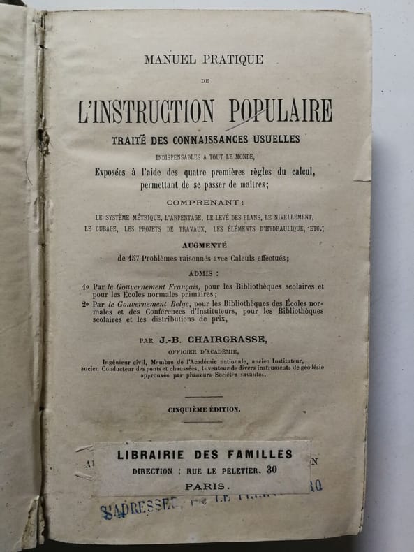 Vulgarisation de la Science. Livre I: Cours théorique et pratique d'Arithmétique. Livre II: Notions d'Algèbre. Livre III: Cours de Géométrie théorique. Livre IV: Cours de Trigonométrie rectiligne. Livre V: Cours de Géométrie pratique. Livre VI: Eléments d'Hydraulique. Livre VII: Eléments de Mécanique. Classification Dewey : 510-Mathématiques