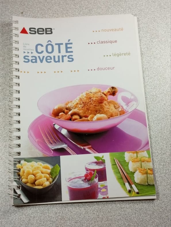 Paris, éd. Les Editions Culinaires - Seb, 2008, in-8, cartonnage souple relié par anneaux métal blanc éd., couv. photos coul. éd., 70 pp., papier glacé, très nb. photos coul., sommaire, index des recettes, Après les grands classiques de la marque Seb par Françoise Mathiot, voici un nouvel opuscule écrit par Elisa Vergne avec de nouvelles recettes toute en saveur et avec toujours la merveilleuse cocotte Seb. Pas courant Très bon état