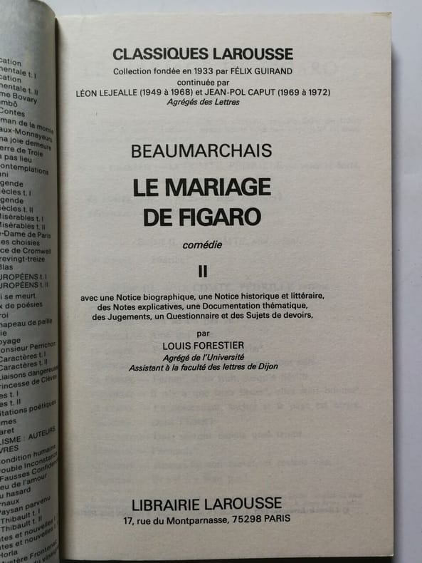 (Rare) Studies on Voltaire and the XVIIIth century, Ed. by Theodore BESTERMAN. 'Le Mariage de Figaro' publié par J.B. Ratermanis. Classification Dewey : 840.05-XVIII ème siècle
