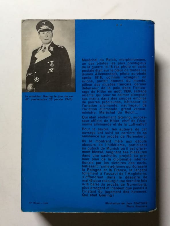 Fayard, 1963, in-8°, 317 pp, traduit de anglais (“Marshal without glory. The troubled life of Hermann Goering”), reliure cartonnée de l'éditeur, jaquette illustrée, bon état