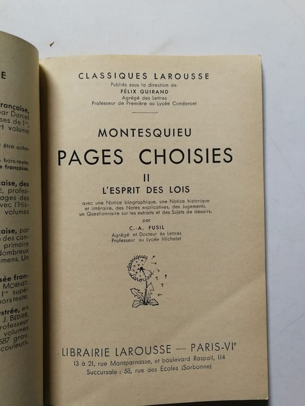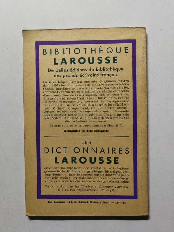 Livre. Librairie Larousse (Collection : Classiques Larousse), 1946.
