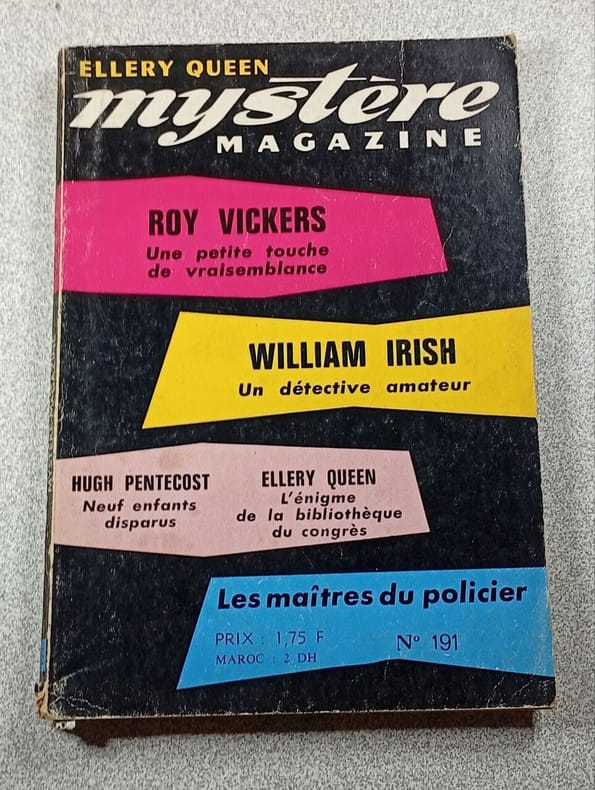 Ellery queen , mystere magazine, La revue littéraire de tous ceux qui s'interressent au policier et au mystère. SOMMAIRE : Une petite touche de vraisemblance- Un détective amateur- Neuf enfants disparus- L'énigme de la bibliothèque du congrès- buttin invisible- le car de dix huit heures- de peur et d'eau fraiche- verdict- le crime passe en jugement. Classification Dewey : 70.49-Presse illustrée, magazines, revues
