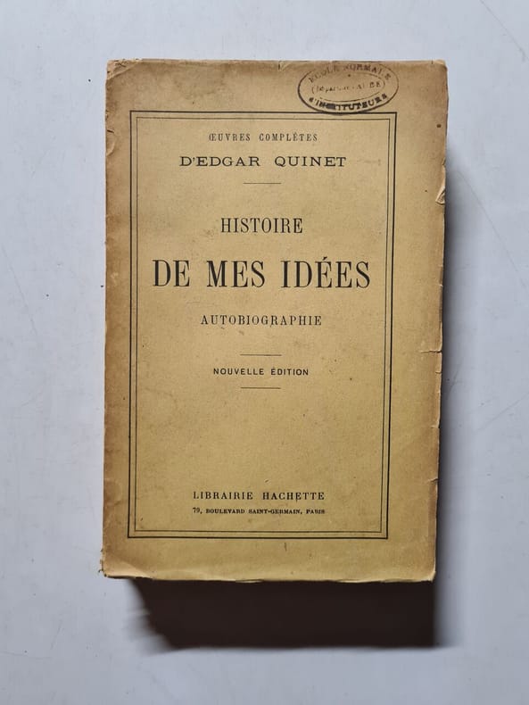 Deuxième édition de cette autobiographie intellectuelle d'Edgar Quinet. Publié par la Bibliothèque des Écoles et des familles.Accroc à la coiffe supérieure.