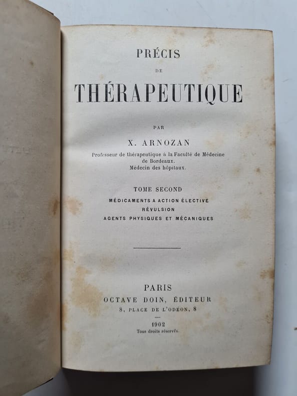 DOIN ET FILS. vers 1911. In-12. Relié. Bon état, Couv. convenable, Dos satisfaisant, Intérieur frais. 644 + 669 pages- nombreux soulignements sans réelles conséquences sur la lecture. . . . Classification Dewey : 615-Pharmacologie et thérapeutique