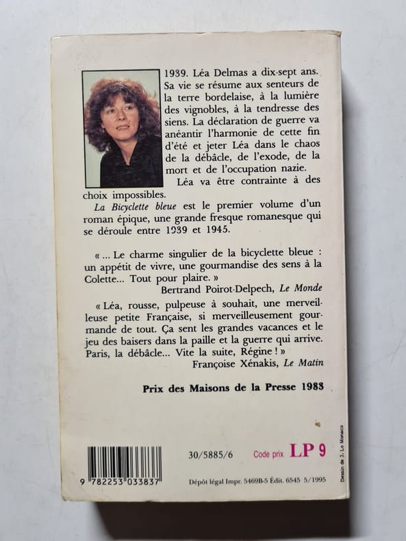 France loisirs 1983 462 pages in8. 1983. Relié sans jaquette. 462 pages. lea delmas a dix-sept ans. sa vie se resume aux senteurs de la terre bordelaise a la lumiere des vignobles a la tendresse des siens. la declaration de guerre va aneantir l'harmonie de cette fin d'ete et jeter lea dans le chaos de la debacle de l'exode de la mort et de l'occupation nazie. lea va etre contrainte a des choix impossibles. la bicyclette bleue est le premier volume d'un roman epique une grande fresque romanesque qui se deroule entre 1939 et 1945. le charme singulier de la bicyclette bleue : un appetit de vivre une gourmandise des sens a la colette. tout pour plaire. lea rousse pulpeuse a souhait une merveilleuse petite francaise si merveilleusement gourmande de tout. ca sent les grandes vacances et le jeu des baisers dans la paille et la guerre qui arrive. paris la debacle. vite la suite regine