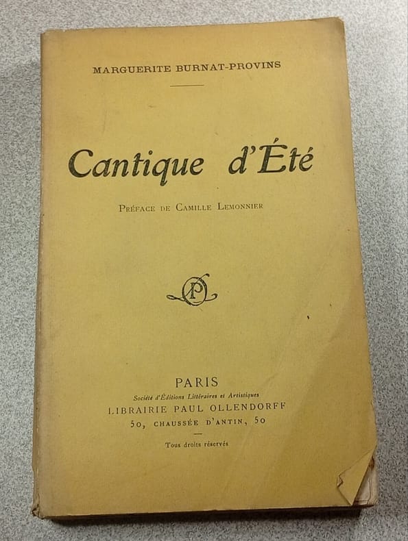 Tous les livres de Madame Burnat-Provins, ecrivaine et illustratrice d'une poésie à lérotisme sous-jacent ou très présent, sont les symboles d'une femme qui n'a pas peur d'exprimer son amour et sa jouissance de la vie, de la nature, de l'homme, et de la femme. Une femme libre. On peut facilement imaginer la bombe que furent ces textes dans une Suisse bourgeoise protestante et puritaine à peine sortie du XIXe siècle.