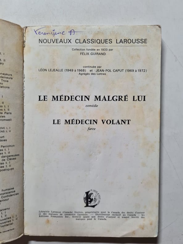 Editions Larousse 1971 1971. Molière: le médecin malgré lui le médecin volant/ Nouveaux Classique Larousse 1971 . Molière: le médecin malgré lui le médecin volant/ Nouveaux Classique Larousse 1971