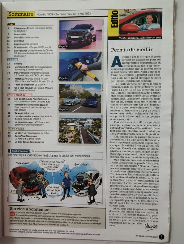 Sommaire : Le futur Espace sous toutes les coutures, Quelle voiture choisir... Nouveauté ou valeur sure ?, Renault Kangoo 4x4 1.6 16V Altica, L'alcool au volant, Auto Plus a testé les restaurants d'autoroute, Voiture chargée : prudence, Les pièges du controle technique Classification Dewey : 70.49-Presse illustrée, magazines, revues