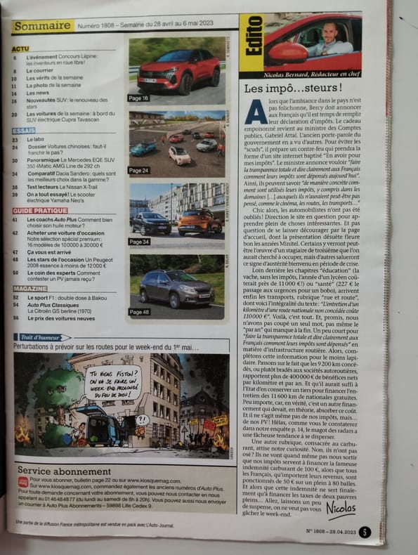 Sommaire : Le futur Espace sous toutes les coutures, Quelle voiture choisir... Nouveauté ou valeur sure ?, Renault Kangoo 4x4 1.6 16V Altica, L'alcool au volant, Auto Plus a testé les restaurants d'autoroute, Voiture chargée : prudence, Les pièges du controle technique Classification Dewey : 70.49-Presse illustrée, magazines, revues