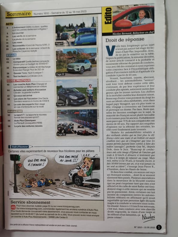 Sommaire : Le futur Espace sous toutes les coutures, Quelle voiture choisir... Nouveauté ou valeur sure ?, Renault Kangoo 4x4 1.6 16V Altica, L'alcool au volant, Auto Plus a testé les restaurants d'autoroute, Voiture chargée : prudence, Les pièges du controle technique Classification Dewey : 70.49-Presse illustrée, magazines, revues
