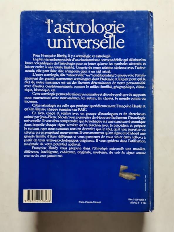 Pour Françoise Hardy il y a astrologie et astrologie. L'astrologie dite " universelle" ou "conditionaliste" permet de mieux se connaître et dévoile quel type de rapports nous entretenons avec nous-mêmes, les autres, les choses, le monde connu ou inconnu. Cette astrologie est celle que pratique quotidiennement Françoise Hardy. Elle vous propose dans l'Astrologie universelle une manière différente, intelligente, cohérente, moderne, de voir les signes comme vous ne les avez jamais vus.
