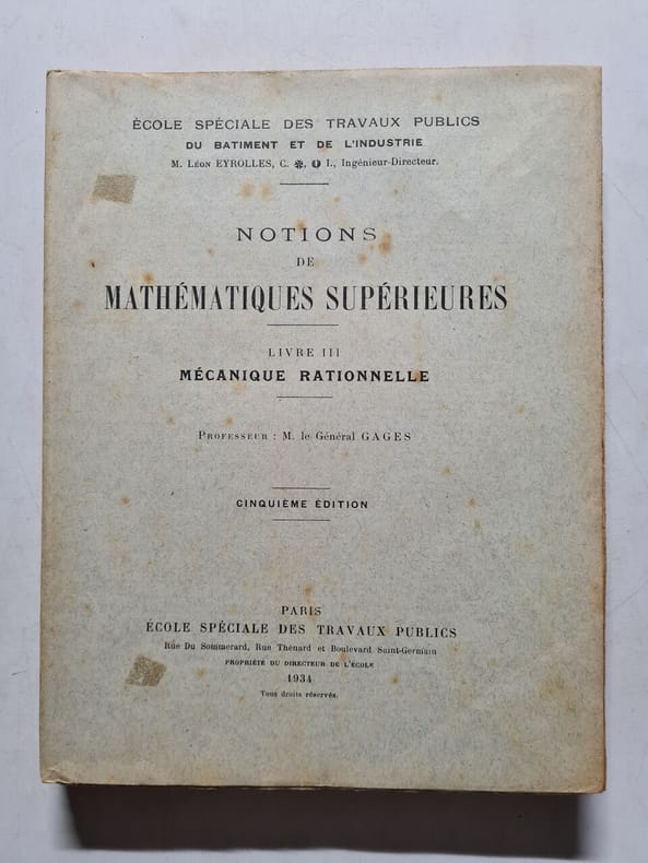ECOLE SPECIALE DE TRAVAUX PUBLICS. 1923. In-4. Broché. Etat d'usage, Couv. légèrement passée, Dos abîmé, Intérieur acceptable. 264 pages illustrées de nombreuses figures dans le texte - Dos manquant - 1er et 2eme plats desolidarisés - Déchirure sur le 1er plat.. . . . Classification Dewey : 510-Mathématiques
