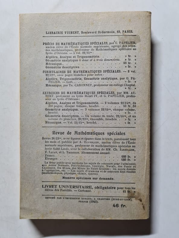 VUIBERT. 1937. In-12. Broché. Etat d'usage, Couv. légèrement passée, Dos fané, Intérieur frais. 169 pages. Coiffes et charnières usées. Petit accroc sur le 2nd plat de couverture.. . . . Classification Dewey : 372.7-Livre scolaire : mathématiques