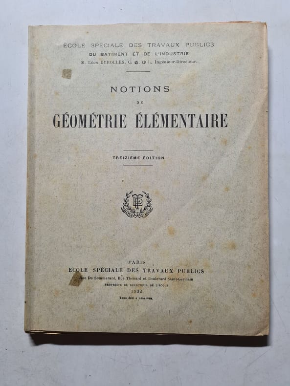Masson et Cie. 1920. In-12. Relié. Etat d'usage, Couv. légèrement passée, Dos frotté, Quelques rousseurs. 247 pages. Illustré de nombreuses figures géométriques en noir et blanc. Plats légèrement abîmés. Annotation sur le 1er plat. 1re page de garde manquante. Tampon au dos du 1er plat. Annotations en pages de garde. Quelques annotations dans le texte.. . . . Classification Dewey : 372.7-Livre scolaire : mathématiques