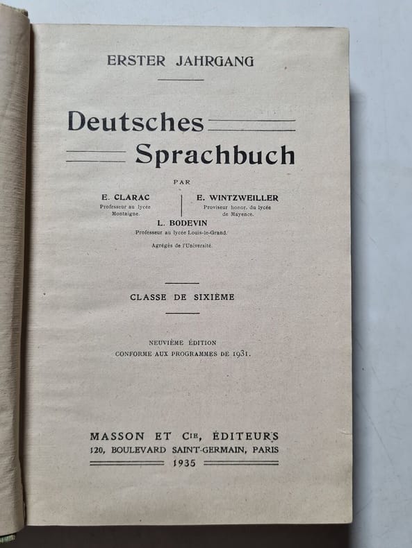 Masson et Cie. 1925. In-12. Cartonné. Etat passable, Coins frottés, Dos fané, Papier jauni. 308 + 31 + 23 pages. Texte en allemand et en français. Rousseurs. Nombreuses illustrations en noir et blanc, dans le texte. Nombreuses annotations à l'encre et au crayon dans le texte et sur le 2e contreplat. 3 étiquettes sur le 1er contreplat. Intérieur de la reliure abîmé.. . . . Classification Dewey : 430-Langues germaniques. Allemand