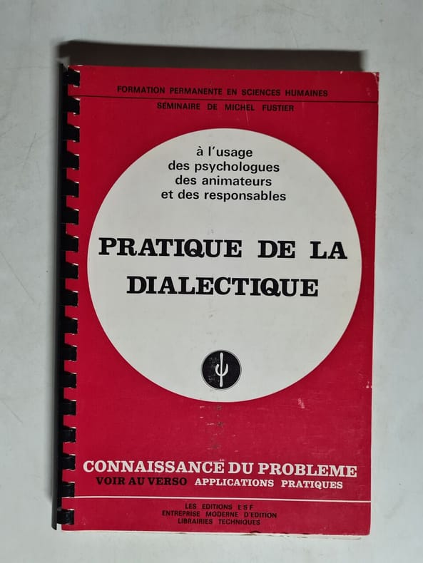 1980, éditions ESF, in-8, reliure spirale format 16 x 24,5 cm, 132 et 32 pp. Couv. imprimée. 1ère partie : Le concept de champ dialectique ; Les grandes dialectiques ; Les mécanismes du retournement dialectique ou généralisation de l' "effet Piegeac" ; Le circept (ou concept circulaire) .comme instrument de synthèse dialectique ; Bibliogr. ; Lexique ; 2e partie : Exercices pratiques.