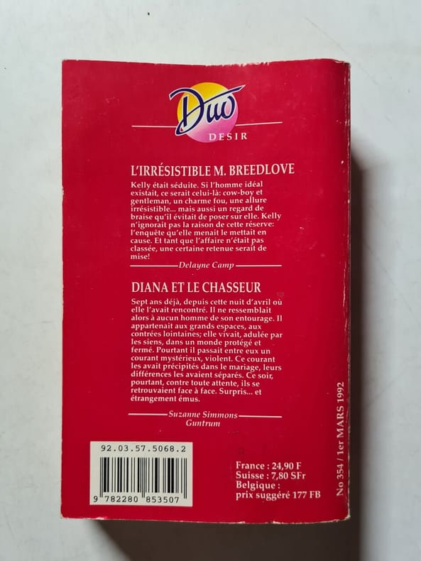 HARLEQUIN DUO Série Désir n° 354. 1992. In-16. Broché. Bon état, Couv. convenable, Dos satisfaisant, Quelques rousseurs. 376 pages.. . . . Classification Dewey : 843.085-Le roman sentimental