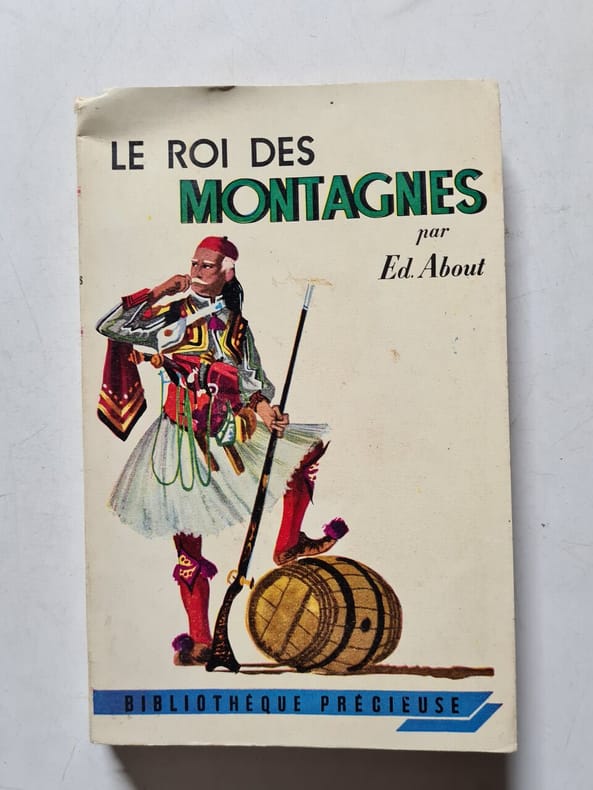 Librairie Hachette et Cie 1876 301 pages in12. 1876. reliure éditeur demi chagrin dos à nerfs. 301 pages. Le Roi des montagnes est un roman d'Edmond About publié en 1876 chez Hachette. Il s'agit d'une aventure humoristique et satirique se déroulant en Grèce mettant en scène un brigand nommé Hadgi-Stavros qui se fait appeler le "Roi des montagnes"