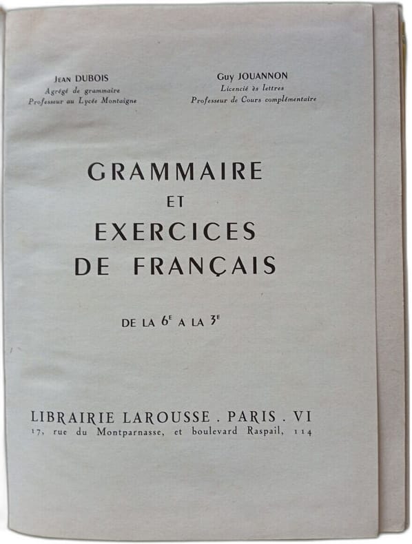 Classes de la sixième à la troisième - Cours complémentaires - Enseignement technique Classification Dewey : 445-Grammaire française