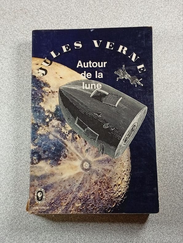 De la terre à la lune, trajet direct en 97 heures et 20 minutes et autour de la lune Collection Hetzel, les Voyages extraordinaires. 41 dessins et une carte par de Montaut, autour de la lune illustré par Emile Bayard et A. de neuville, gravées par Hildibrand. Cartonnage d'éditeur collection Hetzel. vol. in-4, 280x190, bel état intérieur, gravures, tranche de tête dorée, 170, 180pp, très bel état intérieur, tampon du précédent propriétaire. Paris Hachette ss date, 1923