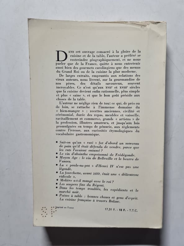 Epoque gauloise et gallo-romaine. L'invasion franque et les moeurs nouvelles. De saint Louis à Louis XII... Classification Dewey : 641.5-Cuisine, art culinaire