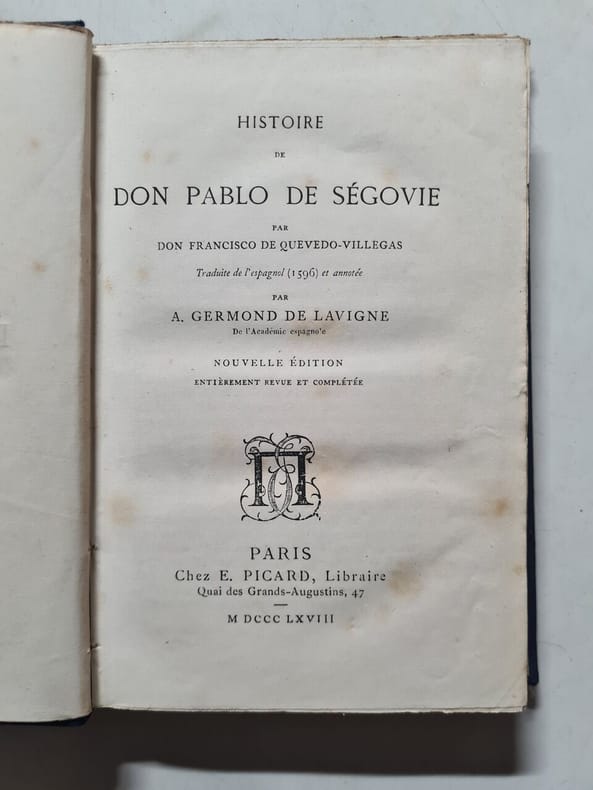 En préambule de ce célèbre roman picaresque espagnol de Francisco de Quevedo publié en 1626, lettre-préface du traducteur à Charles Nodier dans laquelle Germonde de Lavigne donne un historique de l’œuvre et décrit les différents aspects de sa traduction. Suivie de la réponse élogieuse de Charles Nodier. Voir le sommaire sur photos jointes.