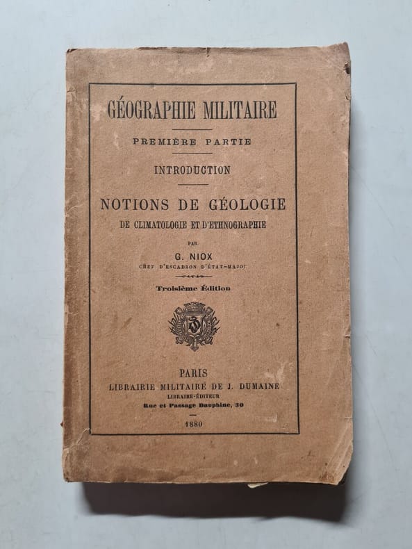 Ecole d'application de l'artillerie & du génie; par A. Marga, capitaine du génie, professeur adjoint du cours d'art militaire à l'école d'application de l'artillerie et du génie; tome 1 : Généralité sur la géographie et sur l'Europe; France : frontières terre; Tome 2 : France : frontières maritimes, plateau central, statistique militaire, Algérie et Colonies. Troisième édition. Atlas en in-folio. Classification Dewey : 910.02-Géographie physique