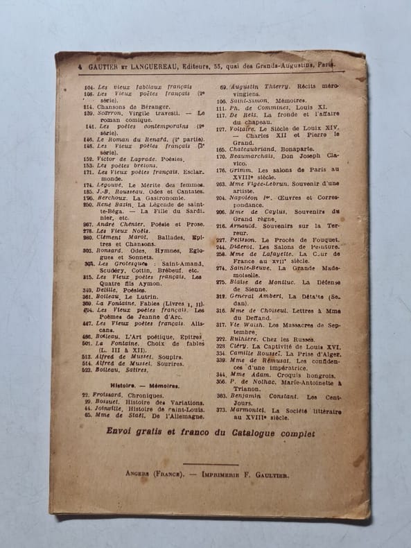 Rapidité d'envoi Tous nos articles sont expédiés le jour même de la confirmation de la commande Soin de l'emballage Un soin particulier est apporté à l'emballage, vos objets voyagent en toute sécurité. A votre écoute Si toutefois un incident devait survenir lors de l'acheminement de votre paquet, n'hésitez pas à nous contacter, nous mettrons tout en oeuvre pour vous satisfaire, en vous proposant un retour, un remboursement ou toute autre soluton à votre convenance. Professionnalisme Les livres que nous vendons sont pour la plupart des livres anciens, nous tâchons d'être le plus objectif possible quant à leur état.