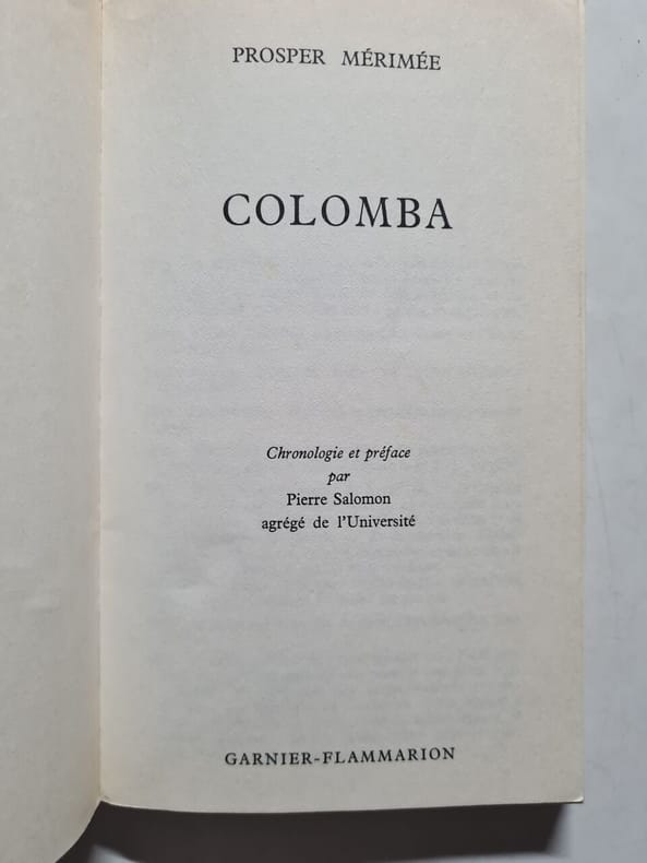 Calmann-Lévy in12. Sans date. Broché. Colomba est une nouvelle de Prosper Mérimée publiée en 1840 dont l'intrigue se déroule en Corse. Elle met en scène Colomba une jeune Corse qui pousse son frère Orso de retour au pays à venger l'assassinat de leur père présumé être l'œuvre de la famille Barricini. L'œuvre explore le conflit entre l'atavisme de la vendetta et les valeurs modernes ainsi que les tensions culturelles