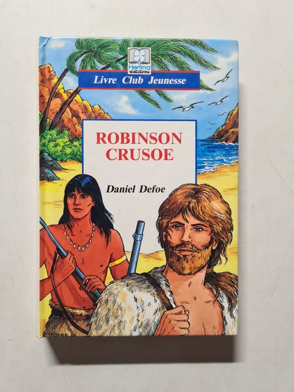 Tours, Mame & Cie, 1859 ; in-12, 283 + 283 pp., reliure d'époque demi-cuir vert, dos orné à 4 petits nerfs, tranches dorées. Daniel De Foe, écrivain et homme politique anglais, publia de nombreux pamphlets et romans. Pour le personnage de Robinson Crusoé, il s'inspira des aventures de Alexandre Selkirk, abandonné dans l'île déserte de Mas a Tierra dans l'archipel de Juan Fernandez, pendant quatre ans et demi. Bon état.
