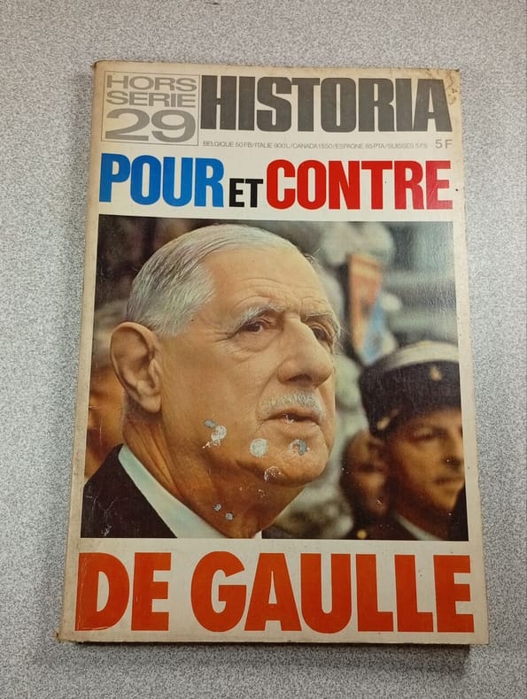 HISTORIA. 1973. In-8. Broché. Etat d'usage, Couv. convenable, Dos satisfaisant, Intérieur frais. 192 pages augmetnées de nombreuses phots en noir et blanc i ntexte - Texte sur 2 colonnes - 1er palt illsutré en couleurs .. . . . Classification Dewey : 944.0821-De Gaulle