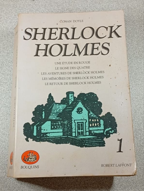 Editions Robert Laffont 1975. Dix volumes in-12 brochés de 199, 345, 282, 228, 203, 212, 282, 201, 300 et 286 pages au format 18 x 12 cm. Superbes couvertures illustrées à rabats par Leigh Taylor. Dos carré avec petites plissures deu pelliculage au tome 2. Plats et intérieur frais. Cette collection éditée pour les 100 ans de Sherlock Holmes, réunit en 10 volumes toutes ses enquêtes : Le Chien des Baskerville - Les Aventures de Sherlock Holmes - Une Etude en Rouge + Le Signe des quatre - Son dernier coup d'archet - Le Retour de Sherlock Holmes ( 2 volumes ) - Les Archives de Sherlock Holmes - La Vallée de la peur - Les Exploits de Sherlock Holmes - Les Mémoires de Sherlock Holmes. A noter que le tome 9 contient 12 excellents pastiches dûs à la plume de John Dickson Carr et d'Adrian Conan Doyle ( fils de Sir Arthur Conan Doyle ). Rare édition originale complète chez l'éditeur et surtout dans un tel état de fraicheur, proche du parfait.