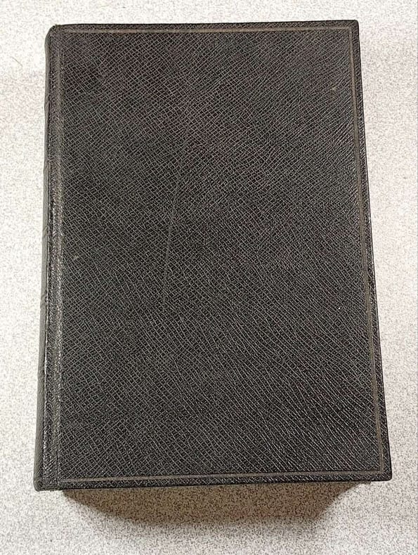 Edition protestante de la Bible de Genève avec diverses additions qui caractérisent les impressions composites vendues à Charenton, outre Les pseaumes de David, mis en rime françoise par Clement Marot et Theodore de Beze (avec page de titre et nombreuses portées musicales) : Histoire de la sainte Ecriture du vieil et du nouveaux Testament, lequel contient l'Abrégé de la chronologie sainte. Cette addition possède sa propre page de titre placée après le titre général. En fin du volumes III, plusieurs textes : La forme des prières ecclésiastiques ; Du baptême, de la Cène, Des articles de la foi ; Des dix commandements ; Des sacrements ; Confession de foi. Toutes ces additions sont présentes pour caractériser la liturgie protestante et sa différence, à la fois Bible orthodoxe du protestantisme et manuel de foi. Bien que la Bible de genève fût plusieurs fois révisées, sa première révision est dû à Théodore de Bèze. Une vignette de titre répétée sur 2 volumes ; le second tome en possédant une différente, marque de l'imprimeur. Une vignette de titre pour la page de titre des Pseaumes. Ornements typographiques. Reliure en plein maroquin vieux rouge d'époque. Dos à nerfs richement orné. Plat décorés à la Du Seuil avec encadrement central et fleurons dans les écoinçons. Roulette sur les coupes et riche frise intérieure. Tranches dorées. Frottements. Un petit fragment de tête manquant au tome du Nouveau testament. Au tome I, manque au mors inférieur en queue. Les coins légèrement repliés. Les 6 premiers feuillets du nouveau testament avec trace de mouillure allant s'estompant ressemblant davantage à des brunissures, en marge interne et dans les marges. Aucun des 3 tomes ne possèdent une page de garde marbrée avant le titre, ce qui au XVIIe n'est pas nécessairement un manque mais se rencontre relativement habituellement. Première page de garde avant le titre du tome I se détachant. Traces de mouillure sur le 2 derniers feuillets du tome I. Une des dernières Bibles protestantes imprimées en France, la dernière datant de 1678. Le culte protestant ayant été interdit à Paris et ses environs par l'Edit de Nantes, Henri IV autorisa la construction d'un temple à Charenton proche de Paris. Les imprimeurs parisiens s'en serviront pour diffuser leurs éditions des textes sacrés. En 1671, les boutiques des libraires à Charenton furent incendiées. Ex-libris manuscrit : Wilhelmiire de Wrede - Photographies et détails sur www.Edition-Originale.com -
