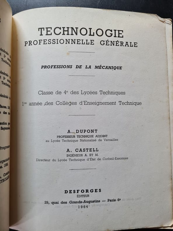 Ensemble de trois volumes brochés , illustré de schémas et dessins . 1ère partie : Métrologie des surfaces , 109 pages - Deuxième partie : Etude fonctionnelle des machines outils , 153 pages - Troisième partie : Travaux réalisés sur les machines outils , 302 pages . En raison de leurs tailles, envoi par colis nécessaire . Enseignement Classes de 1ère des lycées techniques - largeur/hauteur :18x22,5 cm - poids : 840 g - nombre de pages : Env 560 p. - langue :