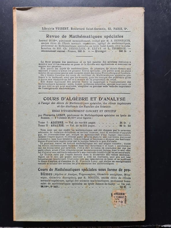 P., Vuibert, 1940, in 8° broché, VII-279 pages ; couverture fanée avec peetits manques.