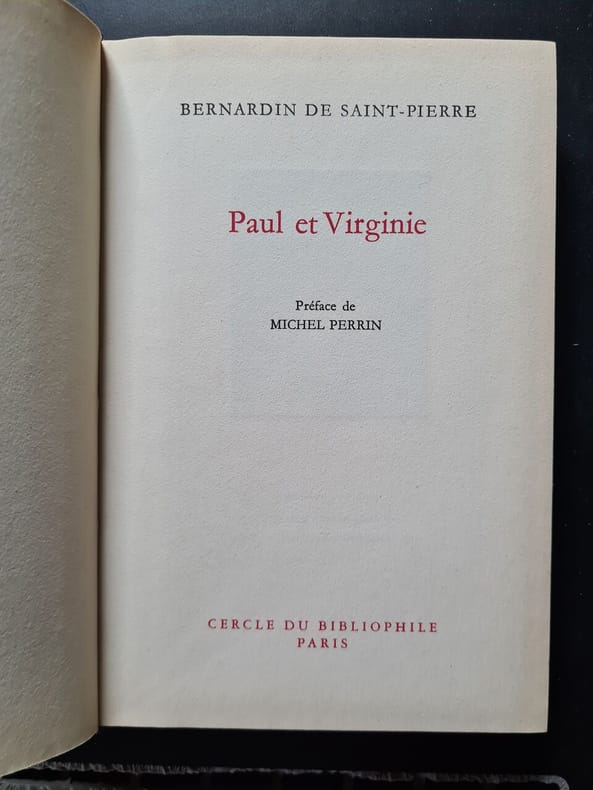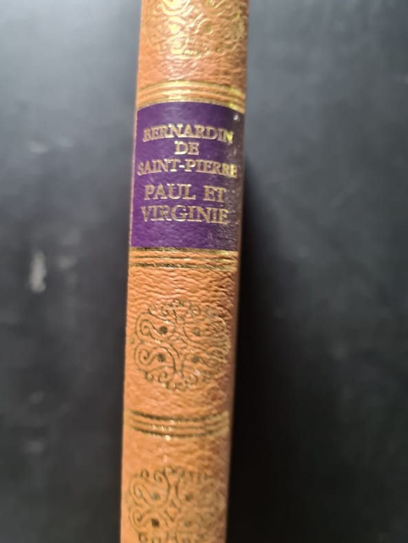 Exemplaire - agrémenté de jolis ornements typographiques - revêtu d'une agréable reliure du temps. Issus de deux familles différentes, Paul et Virginie sont élevés en commun comme frère et sœur, dans la splendeur naturelle des paysages tropicaux de lîle Maurice. Mais à l'adolescence, des sentiments amoureux naissent entre les deux personnages. La mère de Virginie, Madame de la Tour décide alors de l'éloigner de Paul en envoyant sa fille étudier en France, laissant Paul à son chagrin. Plusieurs années après, Virginie annonce son retour sur l'île, mais le navire qui la ramène de France est pris dans une tempête... Appartenant au registre pathétique, Paul et Virginie décrit avec force les sentiments amoureux et la nostalgie du paradis perdu. Au-delà du cadre exotique et de la description d'une société idyllique, Bernardin de Saint-Pierre expose dans ce roman sa vision pessimiste de l'existence. Angles et coupes légèrement élimés. Quelques claires rousseurs et petites tâches éparses dans le corps d'ouvrage. Du reste, très belle condition.