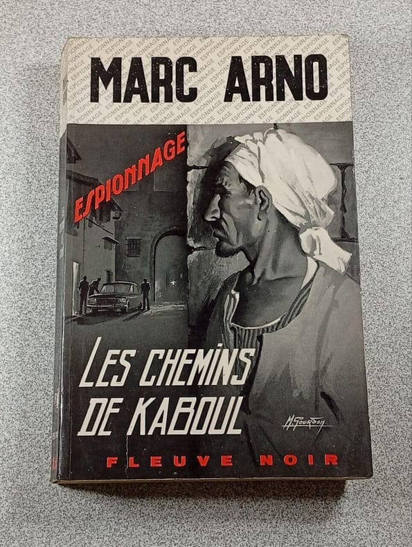 Magnifique Gouache originale, réalisée par Michel Gourdon pour la couverture du livre publié en 1970, intitulé " Les Chemins de Kaboul ", publié sous le n° 850, dans la série Espionnage, aux éditions Fleuve Noir. Œuvre en couleurs, réalisée sur carton fort au format 45 x 32 cm, complète de son calque avec titre. La gouache est signée. Annotations au verso. Etat superbe. Rare.