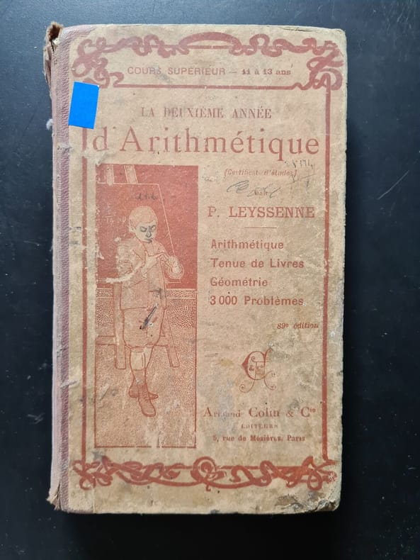 Librairie Armand Colin Reliure d'éditeur 1904 In-12 (11.5 x 128.5 cm), reliure d'éditeur, couverture illustrée, 408 pages, 300 figures en noir in-texte avec plus de 3000 exercices et problèmes pratiques donnés dans les Concours et dans les Examens à l'usage de l'Enseignement primaire, des Écoles commerciales et des candidats au certificat d'Études Primaires, 101ème édition ; coiffes et bords frottés, rousseurs et marques d'usage aux plats, petit incident à la coupe inférieure du 1er plat, rousseurs éparses, par ailleurs intérieur assez bien conservé, assez bel état. Livraison a domicile (La Poste) ou en Mondial Relay sur simple demande.