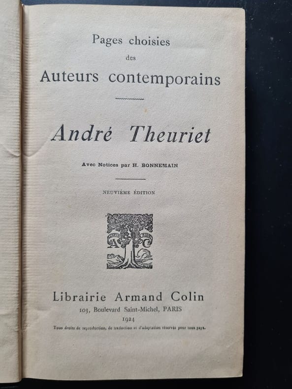Paris, Calmann-Levy, et Armand Colin (Collection "Pages Choisies des Auteurs Contemporains"), 1913, in 12 broché, XII-449pp.