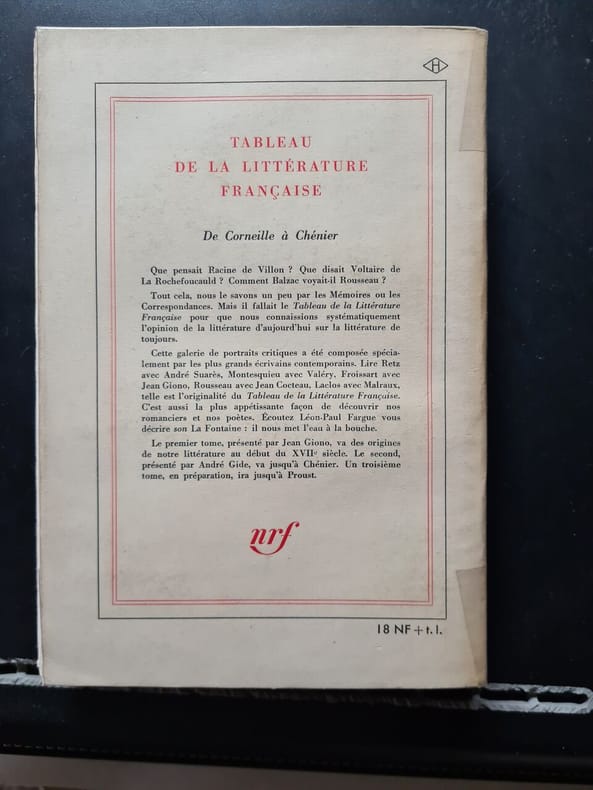 BROCHE EN BON ETAT. Tableau de la littérature française xviie-xviiie siècles de corneille à chénier. préface par andré gide. (Livre) ~ Collectif Gallimard, 1939.489 PAGES.