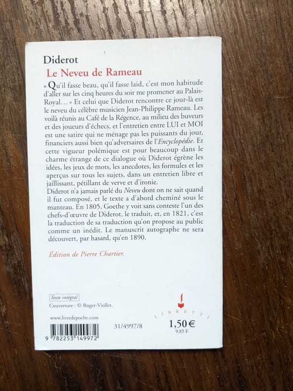 Le Livre de Poche 1966 1966. Diderot: Le neveu de Rameau suivi de six œuvres philosophiques/ Livre de Poche 1966 . Diderot: Le neveu de Rameau suivi de six œuvres philosophiques/ Livre de Poche 1966