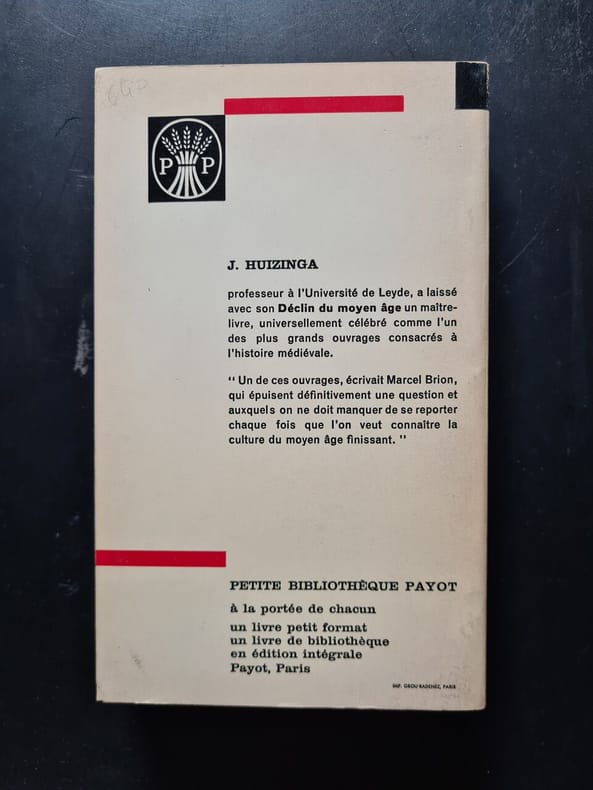 Préface de Gabriel Hanotaux - Traduit du hollandais par J.Bastin - Bibliothèque historique. Classification Dewey : 940.1-Moyen-Age