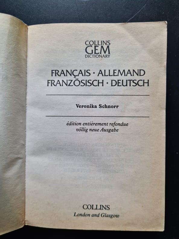 Collins. 1984. In-12. Broché. Etat d'usage, Couv. convenable, Dos satisfaisant, Papier jauni. 343 pages - annotation sur la page de titre. . . . Classification Dewey : 413-Dictionnaire bilingue