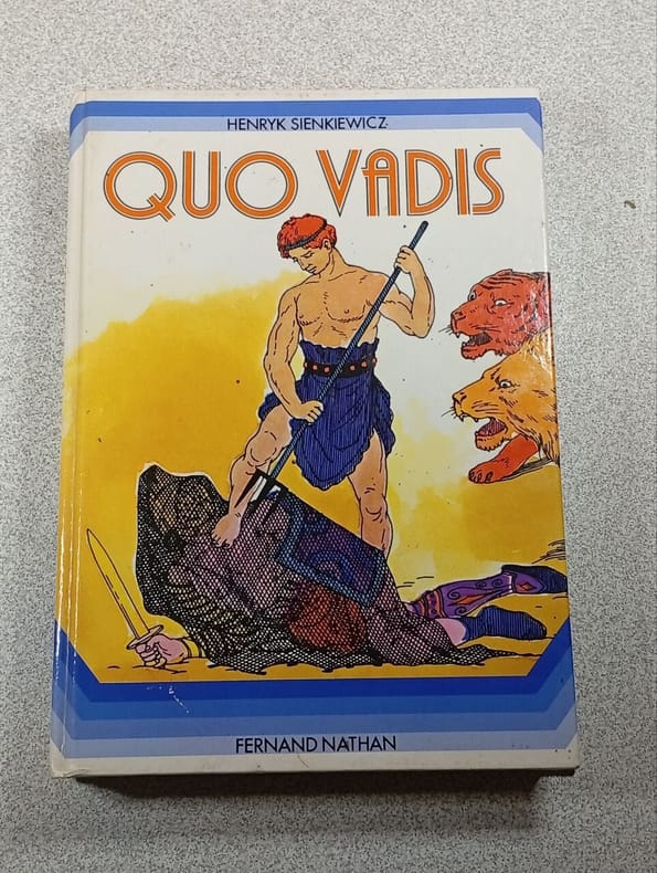 24 planches hors-texte en noir et blanc (complet), dont 17 gravures originales, 3 vues, 2 cartes et 2 plans 1ere traduction en volume, 1900, des extraits étaient déjà parus par la même traductrice dans Le Correspondant en 1896 et 1897 Contents, Chapitres : Quo vadis ? est un roman historique de l'écrivain polonais Henryk Sienkiewicz, publié en feuilleton dans la Gazeta Polska à partir de mars 1895, et traduit pour la première fois en France dans la Revue blanche en 1896. - Quo vadis ? (qui signifie en latin 'Où vas-tu ?') dépeint les persécutions que les chrétiens ont subies sous Néron au Ier siècle en racontant l'histoire des amours d'un patricien, Marcus Vinicius, et d'une jeune femme chrétienne, Callina, surnommée Lygie. Le titre évoque la question qu'aurait posée saint Pierre fuyant Rome et rencontrant Jésus-Christ portant sa croix : « Quo vadis, Domine ? » (« Où vas-tu, Seigneur ? »). Sienkiewicz transpose en fait l'oppression russe sur la Pologne alors divisée, le tsar représenté par Néron voulant convertir les catholiques uniates à l'orthodoxie. Sienkiewicz, lors de ses séjours en Italie, se réunissait en effet avec des résistants polonais à Rome dans une chapelle sur la via Appia, lieu où aurait été prononcé le « Quo vadis ? » . Quo vadis ? vaudra à Sienkiewicz de recevoir en 1905 le prix Nobel de littérature. Les sources littéraires du roman se retrouvent dans les Actes de Pierre, bien que l'auteur ait plus probablement utilisé les récits des guides romains que les Actes de Pierre directement, et Acté d'Alexandre Dumas, roman historique sur la concubine de Néron. - Ce roman historique a fait l'objet de nombreuses adaptation au théâtre et au cinéma. - Henryk Adam Aleksander Pius de Oszyk-Sienkiewicz, né le 5 mai 1846 à Wola Okrzejska (Pologne), et mort le 15 novembre 1916 à Vevey (Suisse), est un écrivain polonais, lauréat du Prix Nobel de littérature en 1905. Il est le neveu du poète polonais Karol Sienkiewicz. (source : Wikipedia) bel exemplaire, frais et propre, le cartonnage éditeur illustré est en très bon état, les mors sont à peine frottés sans gravité, l'intérieur est frais et propre, quelques rousseurs discretes sur les premieres pages et dans les marges d'une poignée de pages, bien complet des 24 planches hors-texte